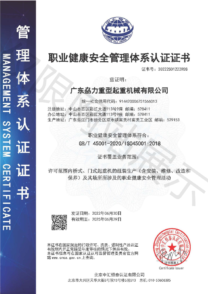 職業(yè)健康安全管理體系認(rèn)證證書